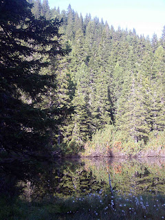 Lacul, precum o oglindă strălucitoare reflectă natura şi întreg cerul, formând o simetrie negreşită între imaginea copacilor regăsită pe pojghiţa apei şi forma lor reală. Ici colo mai văd câte un trunchi de copac căzut în tăul plictisit. Liniştea e deplină - totuşi, acolo, tăcerea vorbea pentru mine!